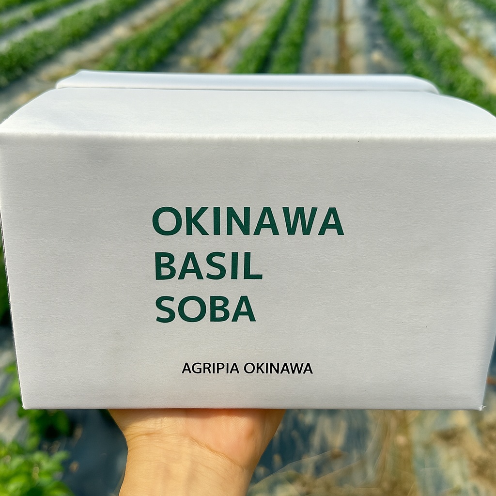 沖縄県糸満市の自社農場で栽培したフレッシュバジルを、朝に収穫し、その日のうちに製麺所へ直送。