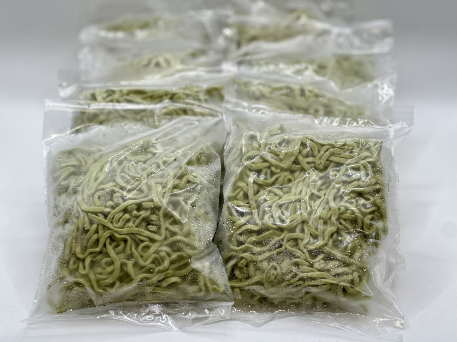 収穫したての香りをそのまま麺に練り込むことで、爽やかなバジルの風味と、もちもち食感を実現しました。